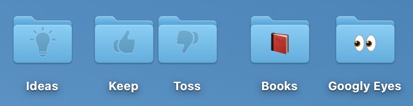 - Customized folders: Folders start out blank, but you can Control-click one, choose Customize Folder, and pick an icon (monochrome) or emoji (colored) to brand the folder.