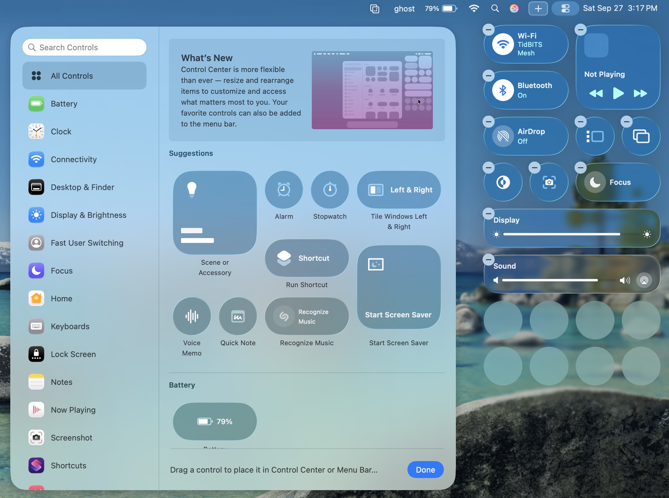 In Tahoe, Control Center not only receives a Liquid Glass makeover but also gains notable new features. Similar to iOS and iPadOS, you can now fully customize the buttons, sliders, and other interface shortcuts in Control Center, removing those you don’t need and adding others. To get started with personalization, click Edit Controls at the bottom of Control Center.